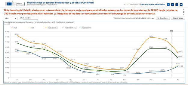 Der EU-Kommissar für Landwirtschaft, Christophe Hansen, räumte kürzlich gegenüber Coag ein, dass es ernsthafte Probleme mit den Importdaten für marokkanische Tomaten gibt. Er gab den Zollbehörden einiger Mitgliedstaaten die Schuld daran. Bei einem Treffen mit dem europäischen Zweig von Vía Campesina am 23. Januar, an dem auch Mitglieder von Coag teilnahmen, räumte Hansen ein, dass es einen gravierenden Mangel an Transparenz bei den Tomatenimporten aus Marokko und der Westsahara gibt. Damit gab er Coag in ihrer Kritik faktisch recht. Auch auf der offiziellen Website der Europäischen Kommission ist dieses Problem inzwischen sichtbar.