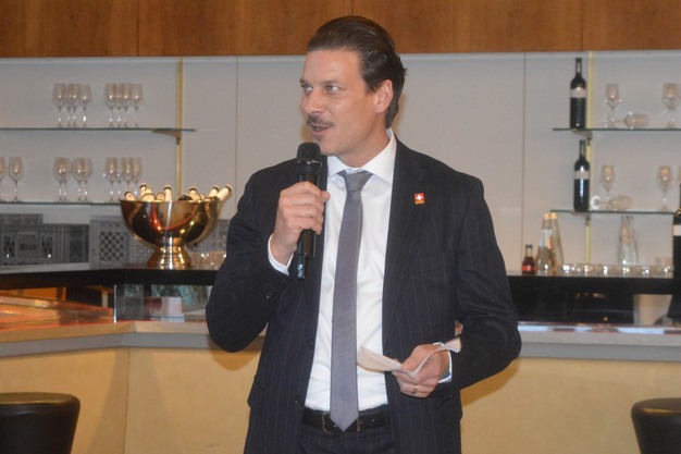 Stefan Marti, stellvertretender Leiter der Wirtschaftsabteilung der Botschaft der Schweiz in Deutschland, besuchte am Donnerstag mehrere Schweizer Aussteller auf der Messe und eröffnete als Ehrengast mit einer Ansprache den diesjährigen Apéro.