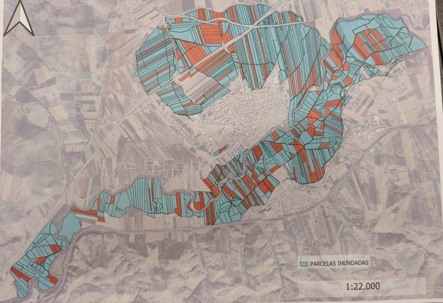 Karte der überfluteten Parzellen rund um die Gemeinde Huétor Tájar