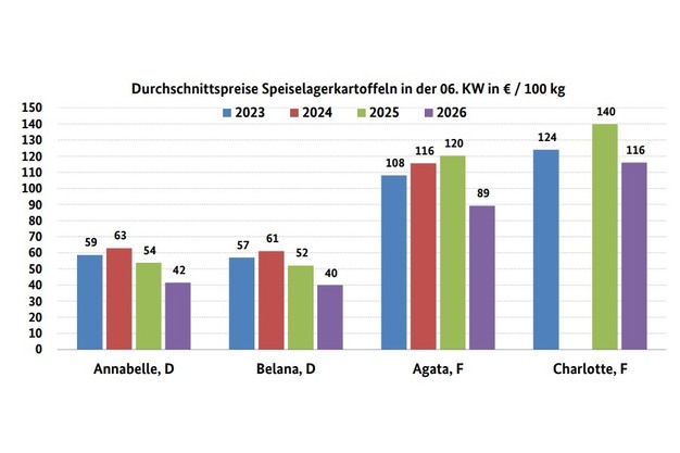 Der Speisekartoffelmarkt verläuft in beständigen Bahnen. Lageraufschläge für Premiumware aus dem Kistenkühllager lassen sich weiterhin nicht am Markt umsetzen. Am Industriekartoffelmarkt ergeben sich weiterhin keine Änderungen. Die Verträge 2026 werden mit Spannung erwartet.