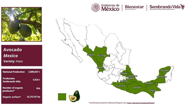"Derzeit liefert das Programm etwa 5.000 Tonnen Avocados pro Jahr, eine Zahl, die im Vergleich zur nationalen Gesamtproduktion noch bescheiden ist, aber Wachstumspotenzial hat. Es befindet sich im Wachstum", erklärte Jeroen Pruijn, Vertreter des Bereichs Vermarktung des Unterstaatssekretariats für produktive Integration und ländliche Entwicklung der mexikanischen Regierung.