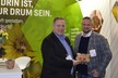 Thomas Strieder (l) und Marcel Petrick präsentierten auf der Biofach 2025 u. a. Silphie-Verpackungen für Obst und Gemüse.
