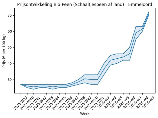 Der Preis für Bio-Karotten ist seit Herbst 2025 stark gestiegen. Während der Preis für Bio-Karotten aus Emmeloord in KW 39 des Jahres 2025 noch bei etwa 27 EUR pro 100 kg lag, notiert der Markt in KW 9 des Jahres 2026 bei 70 bis 72 EUR pro 100 kg. Dies entspricht einem Anstieg von über 160 % innerhalb von fünf Monaten.