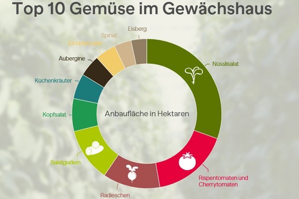 Tomaten zum Beispiel, werden fast ausschließlich im Gewächshaus angebaut, ebenso wie Auberginen. Beim Nüsslisalat wird hingegen viel mehr im Freiland produziert als im Gewächshaus.