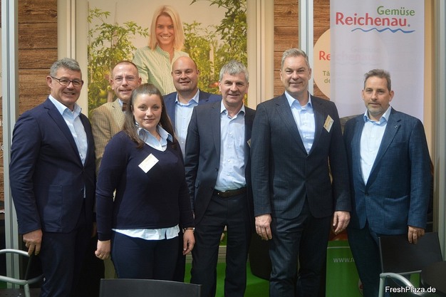 Die Belegschaft der Reichenau-Gemüse eG auf der diesjährigen Fruit Logistica mit stv. Geschäftsführer Christian Müller (3. v.r.) und Geschäftsführer Johannes Bliestle (2. v.r.)