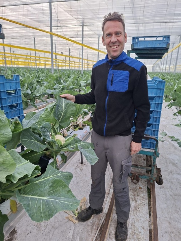 Im vergangenen Jahr baute Ralph zum ersten Mal Blumenkohl in seinem Gewächshaus an. Mit Blick auf Arbeitsaufwand und Energieverbrauch beschloss er, seinen Anbauplan von einer vollständigen Ausrichtung auf den Tomatenanbau hin zu einer größeren Diversifizierung anzupassen. "Voriges Jahr habe ich bei ZON mit der Versteigerung von gelben Zucchini begonnen. Von dort aus kam ich auch ins Gespräch über den Gewächshaus-Blumenkohl."