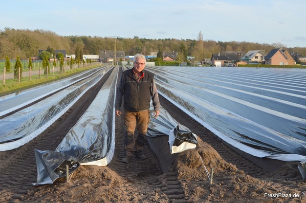 © Hugo Huijbers | FreshPlaza.deWinfried Derksen im Spargelfeld kurz vor dem Ernteauftakt. Speziell die Sorte Prius weist in Emmerich-Elten sehr gute Ergebnisse auf.