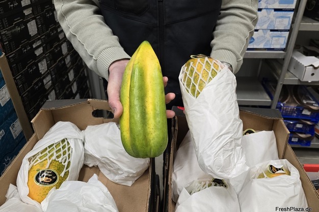 Wilder Papaya aus Ecuador (l) sowie der handelsübliche Papaya Formosa aus Brasilien. Vor allem letzterer Artikel habe sich über die Jahre hinweg als (preis)stabiles Segment bewährt.