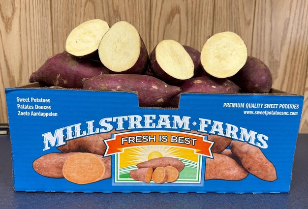 "Das Gleiche gilt für die Süßkartoffeln. Diese finden derzeit aus Ägypten und Nordamerika guten Absatz. Aus Ägypten erhalten wir die Sorte Bearegard und aus Nordamerika von unserem Stammlieferanten Millstream die Sorten Murasaki (rot-weiß) und die orangefleischige Convington; außerdem führen wir noch einige Monate lang die violettfleischigen Süßkartoffeln im Sortiment."
