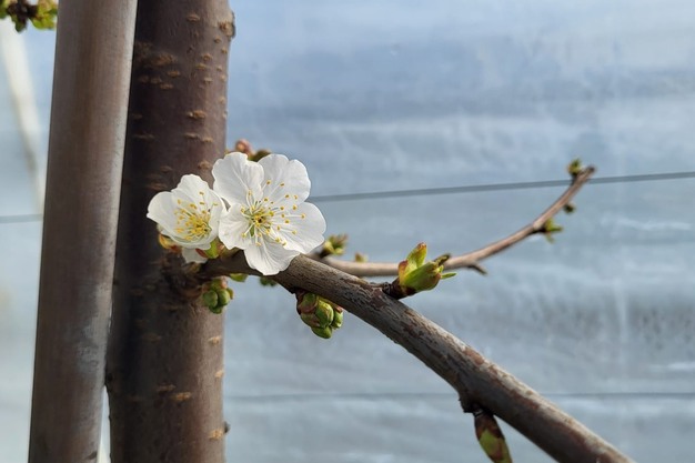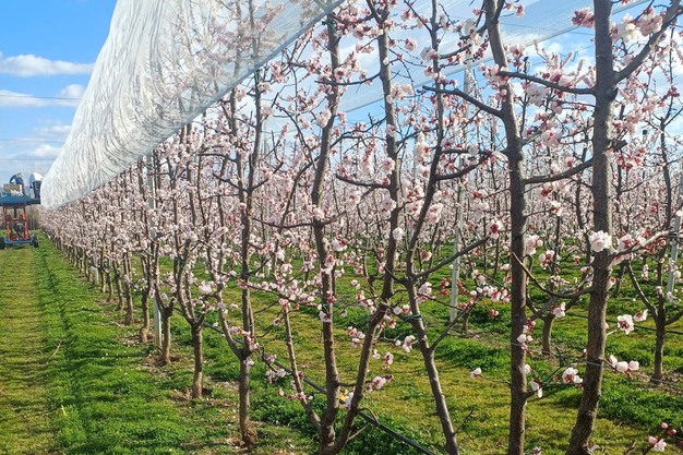 „Wir bewirtschaften 22 Hektar Aprikosen, von denen die Hälfte mit Plastik abgedeckt ist, 10 Hektar Kirschen, die alle mit Plastik abgedeckt sind, und 5 Hektar Pflaumen, die noch nicht abgedeckt sind. Diese Abdecktechnik, eine große Investition, die wir vor zwei Jahren getätigt haben, schützt uns vor Regen und Hagel, hilft uns aber auch, früher auf den Markt zu kommen."