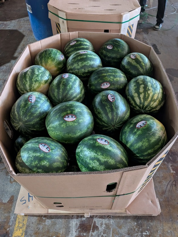 Mittelgroße, kernlose Wassermelonen und XL-kernlose Wassermelonen, in Kisten für den amerikanischen Markt