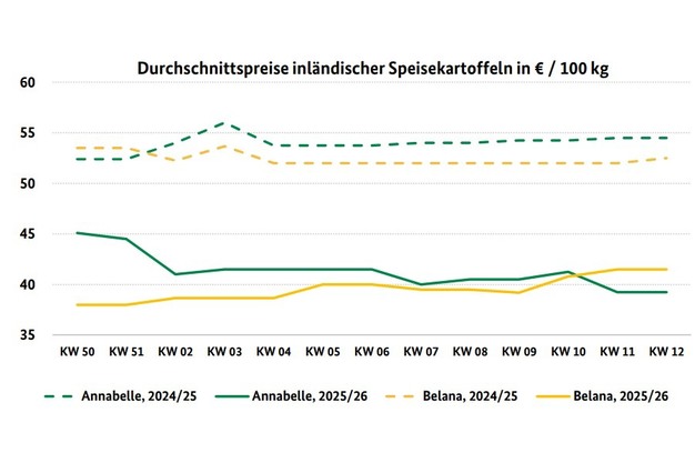 Die angelaufene Spargelsaison wirkte sich nicht übermäßig auf die Unterbringungsmöglichkeiten aus. Die Präsenz der Speisefrühkartoffeln verstärkte sich augenscheinlich, die ägyptischen, zyprischen, italienischen und marokkanischen Importe hatten aber weiterhin nur einen ergänzenden Status. Die Geschäfte verliefen in ruhigen Bahnen, die Notierungen verharrten für gewöhnlich auf dem bisherigen Niveau. Auch der Absatz der Speiselagerkartoffeln geschah relativ unaufgeregt. Die Qualität konnte laut BLE weiterhin überzeugen, sodass auch in diesem Bereich die Bewertungen für gewöhnlich konstant blieben.