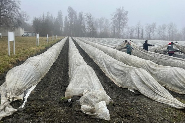 Bereits am 20. März konnte dem Zürcher Engrosmarkt erster regionaler Heizspargel offeriert werden. "Wir bauen den Heizspargel mittlerweile auf drei Hektar an und konnten im Vergleich zu den Vorjahren etwa eine Woche früher starten", berichtet Fabian Kummer vom Spargelbetrieb Schmitterhof aus Diepoldsau. Auch der erste 'reguläre' Frühspargel der Sorte Prius ist nun im Umlauf, führt der Erzeuger weiter aus.