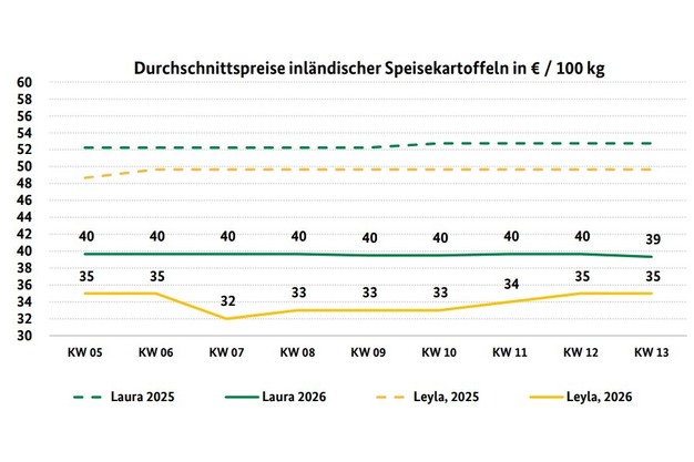 Auch in KW 13 verlief der Kartoffelmarkt weitgehend ruhig, wobei die Nachfrage im Vorfeld der Ostertage leicht angezogen hat. Gleichzeitig blieb das Angebot ausreichend und sank nicht parallel zur moderat steigenden Nachfrage, sodass es keine Preisveränderungen gab.