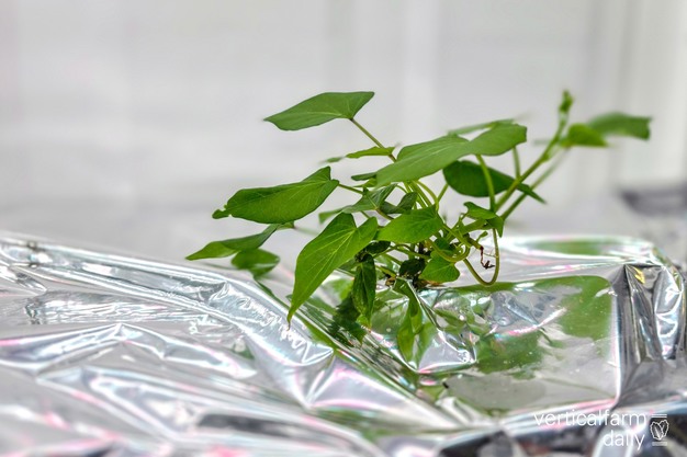 Süßkartoffeln gehören zu den eher unkonventionellen Kulturen, die untersucht werden. "Zunächst sind die Leute überrascht, Süßkartoffeln in einem vertikalen Anbausystem zu sehen", sagt Dr. Ling lächelnd; allerdings "konzentrieren wir uns nicht auf die Knollenproduktion." Wir können also nicht damit rechnen, dass in nächster Zeit eine Nebenproduktion von Pommes frites entsteht. Stattdessen testen die ARS-Forschenden, ob vertikale Farmen als Vermehrungszentren dienen könnten, um in einer schnellen Baumschule sauberes Pflanzgut für den Feldanbau zu produzieren. "Wir verfolgen den gesamten Produktionszyklus. Von der Vermehrung bis zur Ernte auf dem Feld."