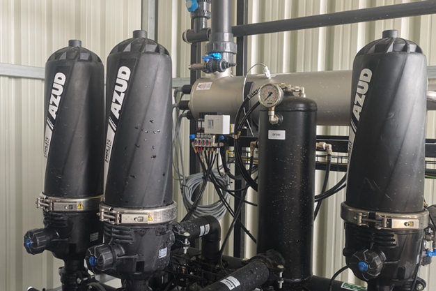 AZUD reagiert darauf mit Anlagen zur Aufbereitung von Drainagewasser, die nach einem vierstufigen Prozess aus Filtration und Desinfektion arbeiten. "Im ersten Schritt erfolgt die mechanische Filtration mit luftunterstützten AZUD Helix Automatic-Geräten auf zwei Filtrationsstufen von 100 und 5 µm, wodurch der größte Teil der organischen und anorganischen Partikel entfernt wird."