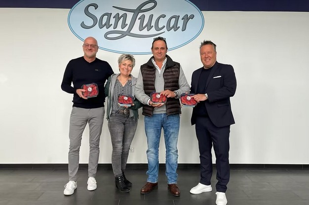 Irmgard und Ralf Hensen (m) mit der Geschäftsführung des Vermarktungspartners SanLucar.