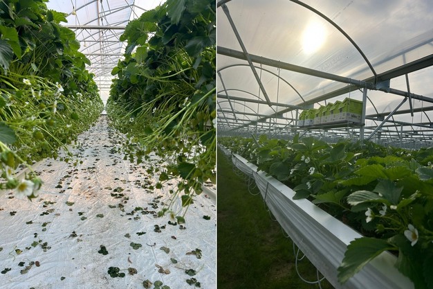 Einblick in den Erdbeeranbau im Glashaus.