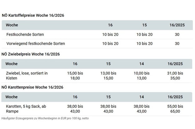 Am österreichischen Zwiebelmarkt setzt sich die freundliche Stimmung der vergangenen Woche fort. Das Angebot an österreichischen Zwiebeln nimmt stetig ab und trifft auf steigendes Nachfrageinteresse. Auch die Qualität der Kühlhausware ist heuer durchwegs zufriedenstellend bis sehr gut. Während auf dem Inlandsmarkt die Preise zuletzt nur geringfügig angehoben werden konnten, zogen die Exportpreise nochmals kräftig an. Für Zwiebeln aus dem Kühlhaus, geputzt und sortiert in der Kiste, wurden zu Wochenbeginn je nach Qualität meist 15 bis 18 EUR/100 kg bezahlt. Schwächere Qualitäten werden unter diesem Preis gehandelt.