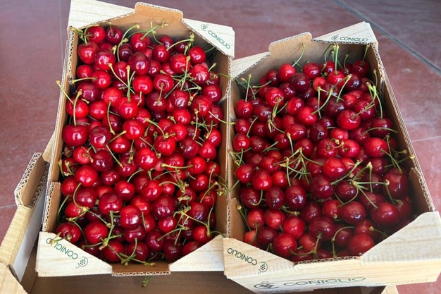 "Unsere Kirschsaison hat am Sonntag, dem 26. April 2026, begonnen, etwas später als im vergangenen Jahr. Die Sorte Bigarreau ist als Erstes an der Reihe. Trotz einer Verzögerung durch das schlechte Frühlingswetter sind die Erwartungen für die Ernte positiv und die Qualität sieht gut aus", sagt Nicola Coniglio, Inhaber des gleichnamigen Unternehmens in der südlichen Provinz Bari. "Die kleine Verzögerung ist keine Katastrophe. Das ist etwas, das wir in den kommenden Wochen auffangen können, ohne dass die Qualität des Produkts darunter leidet." Vorerst werden die Kirschen nur auf den italienischen Großhandelsmärkten verkauft, aber das Unternehmen rechnet damit, in einigen Wochen mit dem Export nach Mitteleuropa zu beginnen.