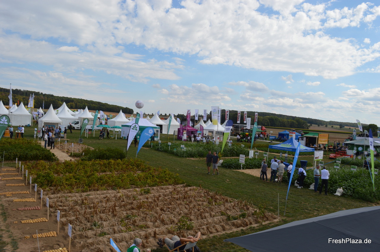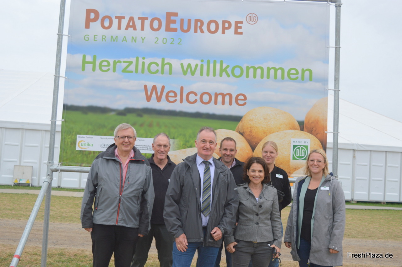 Das DLG-Veranstalterteam zog am zweiten Messetag eine erfreuliche Bilanz. Im Vergleich zur vorherigen PotatoEurope auf Gut Bockerode im Jahr 2018 hat es diesmal 13 Stände mehr gegeben, so Wilfried Wolf (m).