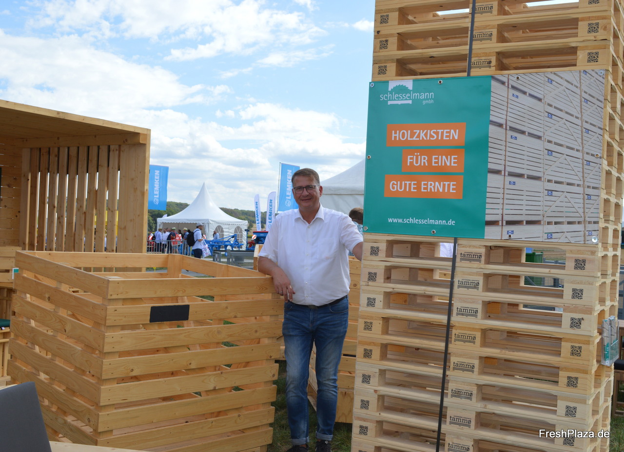 Hans Bockhop kümmert sich beim Holzkisten-Hersteller Schlesselmann GmbH um den Vertrieb. Das Unternehmen produziert und vertreibt Holzkisten und -paletten, u.a. für Agrarzwecke.