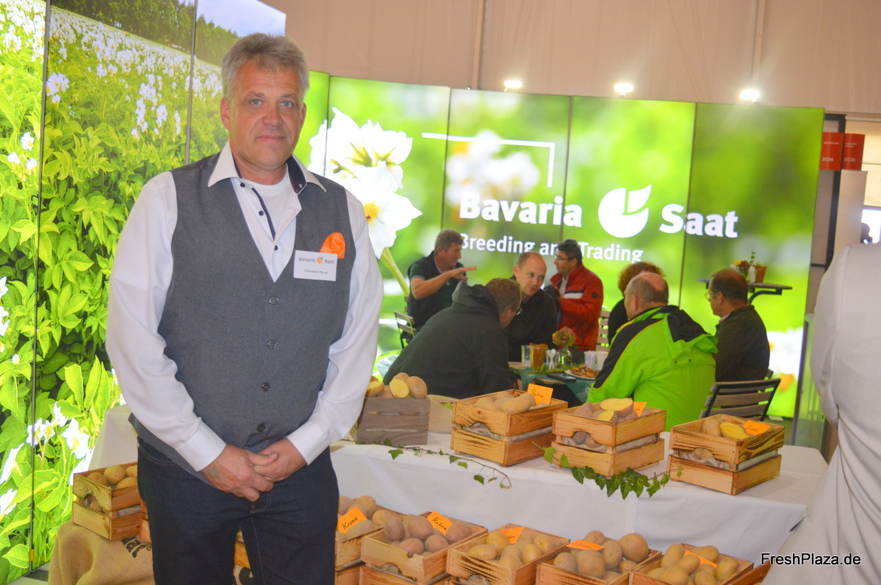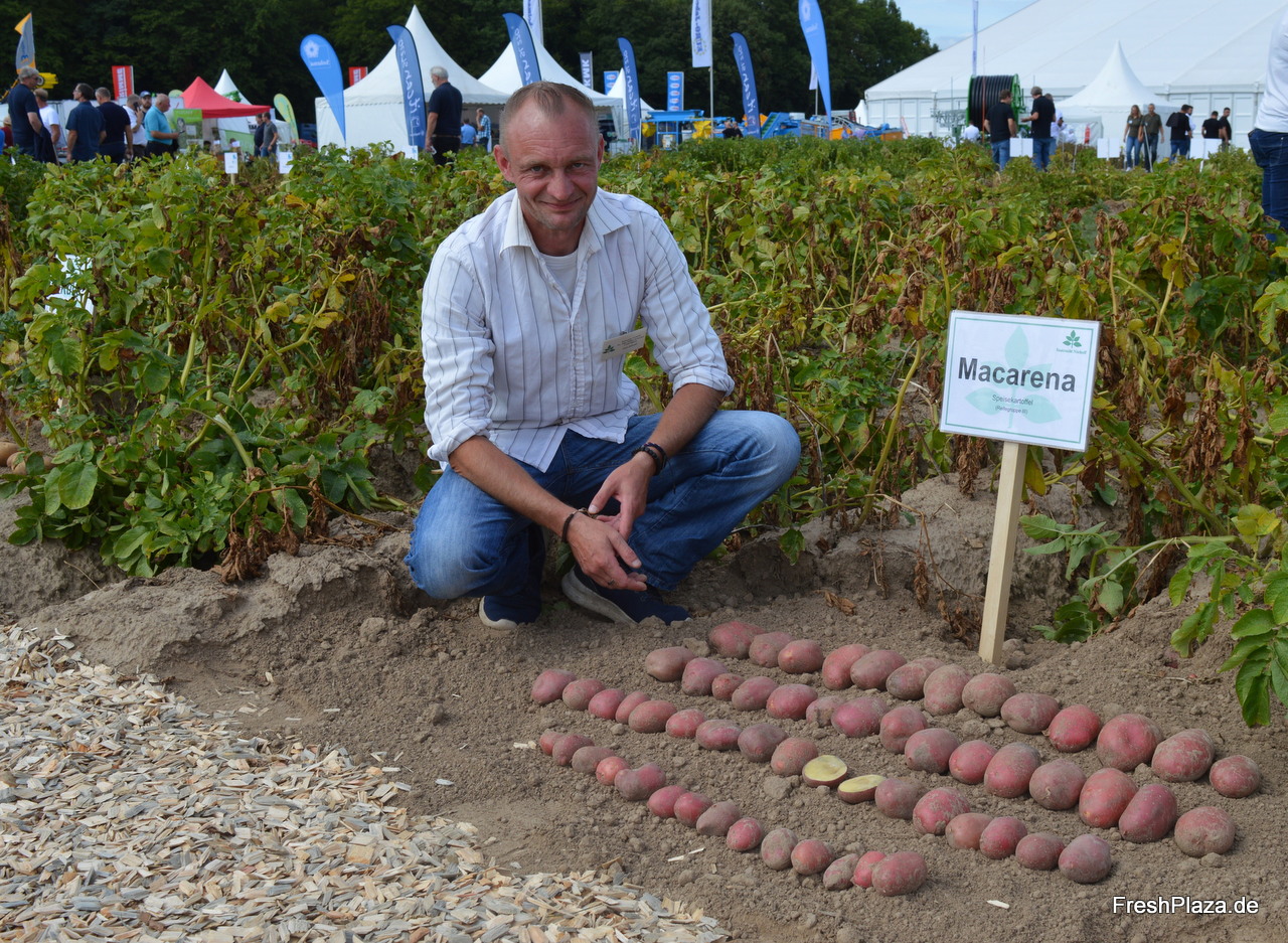 Dennis Behrendt von Saatzucht Niehoff präsentierte u.a. die rotschalige Speisesorte Macarena.