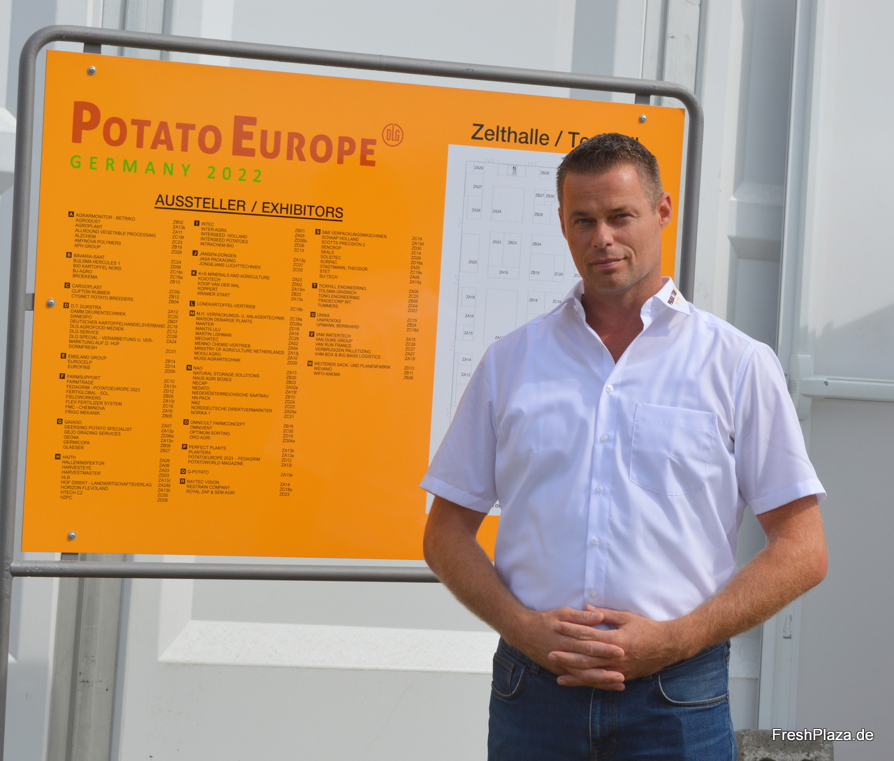 Frits Schlimback des jungen Unternehmens Muss Agrartechnik stellte erstmals auf der Potato Europe aus. Das Zwischenfazit am Ende des ersten Messetages war besonders positiv.