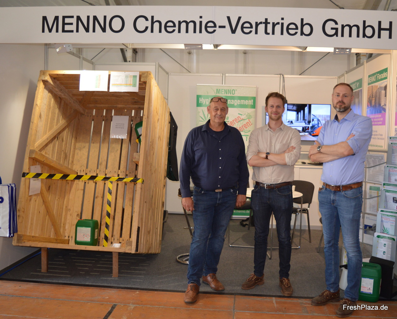 Das Team von Menno Chemie, Bernd Albers, Johannes Bellut und Christian Eidam, war mit einem bunten Stand am Eingang des zentralen Messezeltes vertreten.