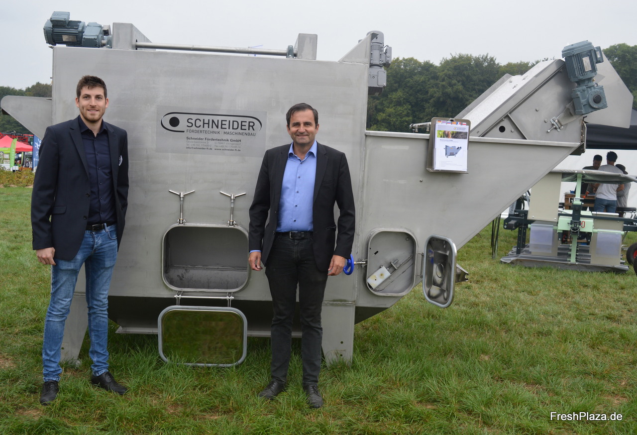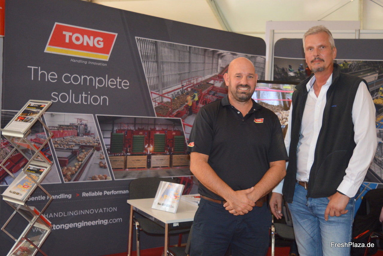Charlie Rich (links, Tong) und Arne Reinbold des deutschen Vermarktungspartners LG Rain. "Automatisierung ist in aller Munde und vor allem optische Sortierung gewinnt dabei rasch an Bedeutung", so Rich. Zum Jahreswechsel nahm Tong einen nagelneuen Produktionsstandort in Lincolnshire in Betrieb.