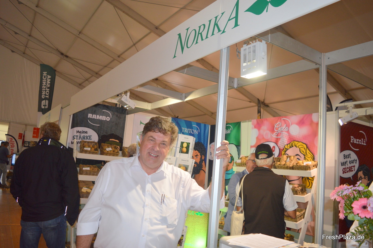 Norika-Chef Wolfgang Walter blickt auf eine gelungene Messepräsenz zurück. Das Züchtungsunternehmen mit Sitz in Mecklenburg-Vorpommern war sowohl am Außengelände als auch im zentralen Zelt vertreten.