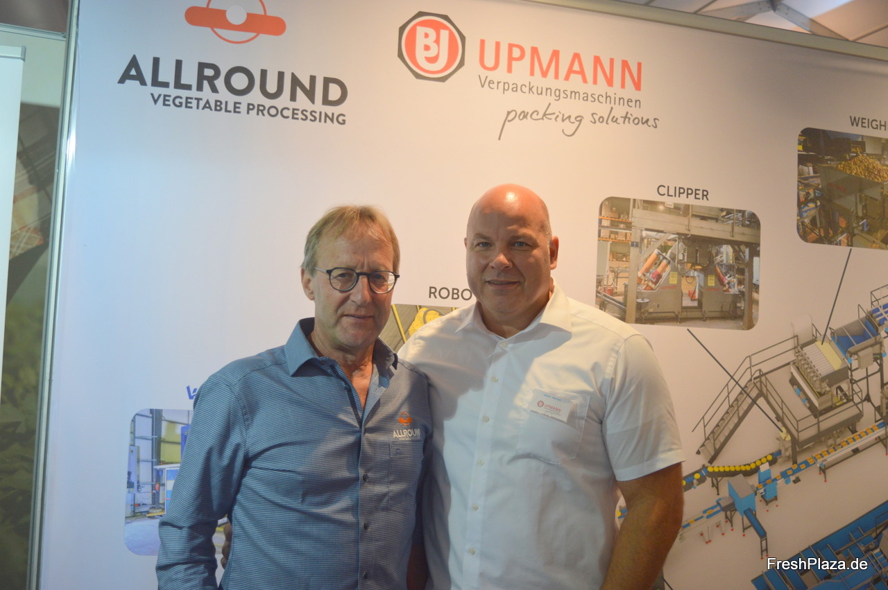 Hans Smit (Allround Vegetable Processing) und Oliver Werner (Upmann Verpackungsmaschinen GmbH) am Gemeinschaftsstand