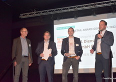 Kai Arno (GLOBUS), Michael Schotten (Fruchthandel Magazin), Tim Strübing (GLOBUS) und Kaasten Reh (Fruchthandel Magazin). GLOBUS ist der diesjährige Gewinner des Retail Awards im Bereich SB-Warenhäuser.