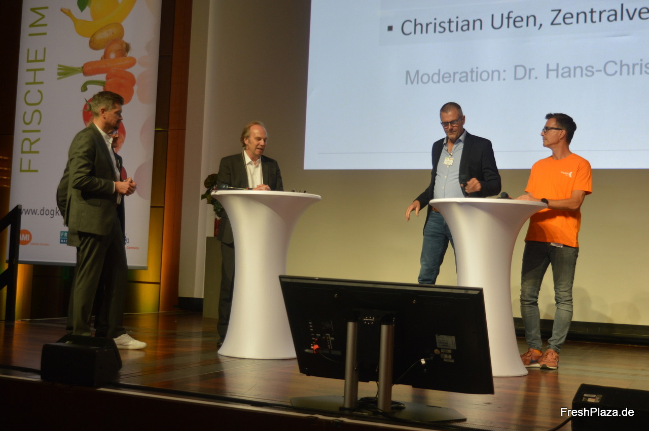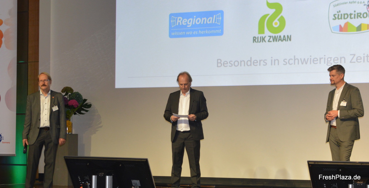 Die Moderatoren des Tages: Hans-Christoph Behr (AMI), Kaasten Reh (Fruchthandel Magazin) und David Hintzen (GS1 Germany GmbH)