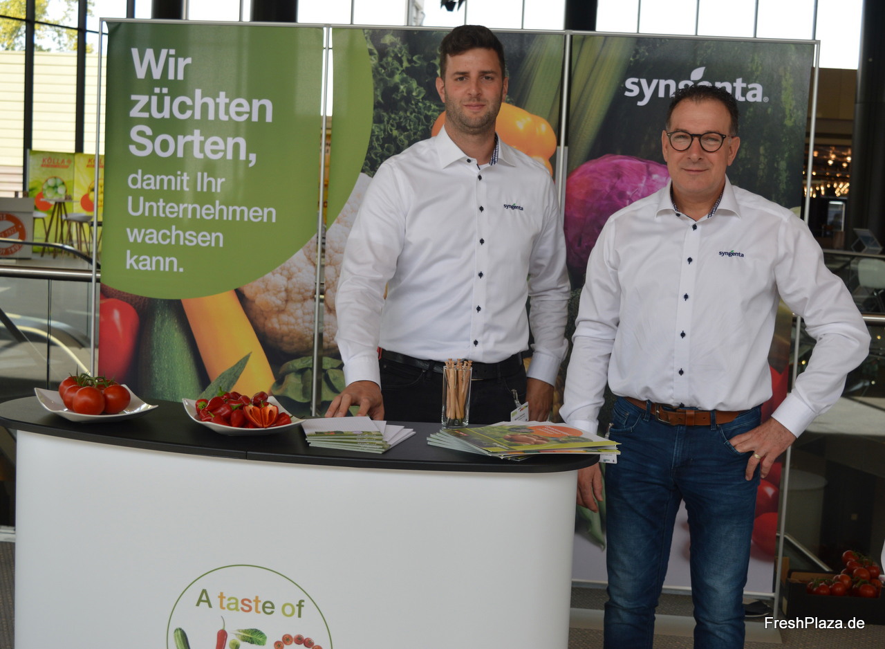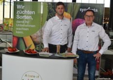 Markus Dammer und Peter Colbers von Syngenta präsentierten zwei moderne Züchtungen, nämlich die kernlose Snackpaprika Angello sowie die Strauchtomate Cibello mit hohem Brixgehalt.