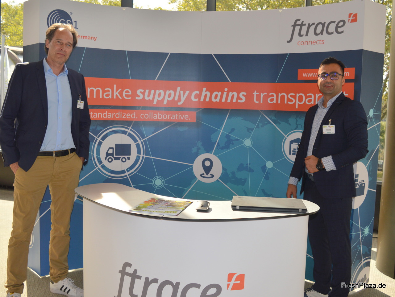 Michael Frank und Hadi Fatehi von ftrace, einem Tochterunternehmen der GS1. Mittels moderner Softwarelösungen versucht man die Effizienz sowie die Transparenz entlang der Lieferkette zu steigern.