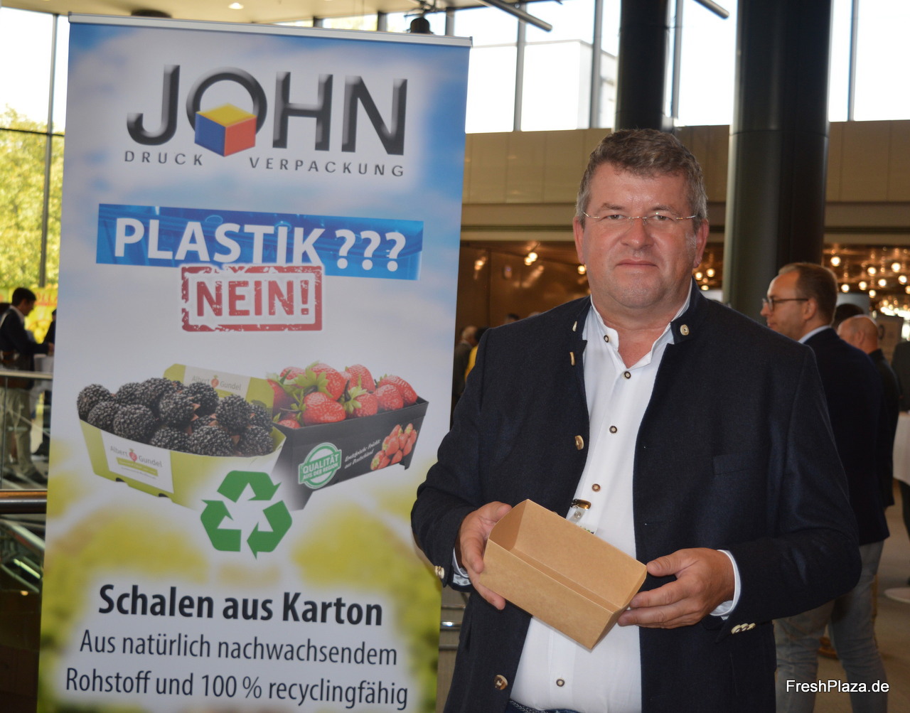 Thomas John der Hans John GmbH Druck und Verpackung widmet sich der Herstellung sowie dem Vertrieb von Obst- und Gemüseschalen. Neu im Portfolio ist eine wasserfeste Schale für Pflücksalat.