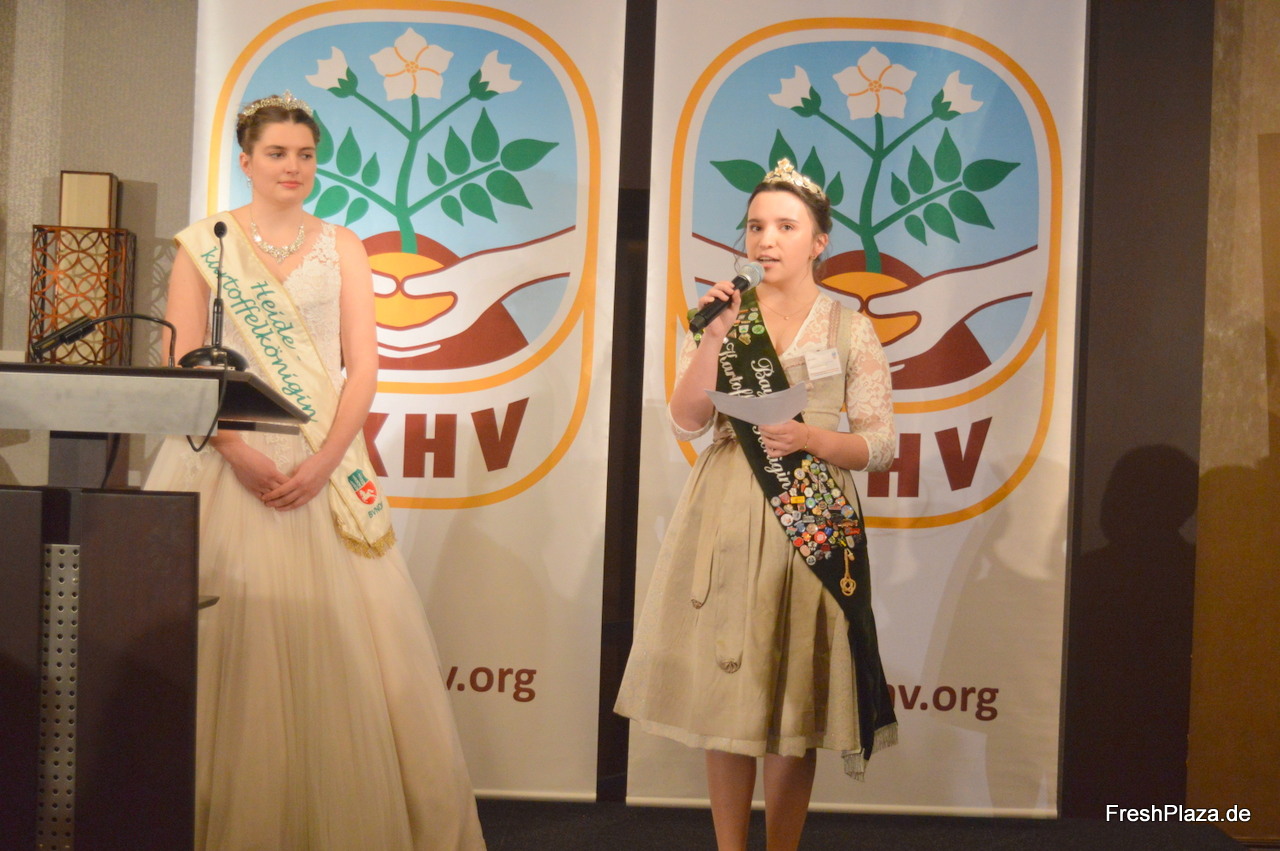 Die Heidekönigin sowie die bayerische Kartoffelkönigin gemeinsam auf der Bühne