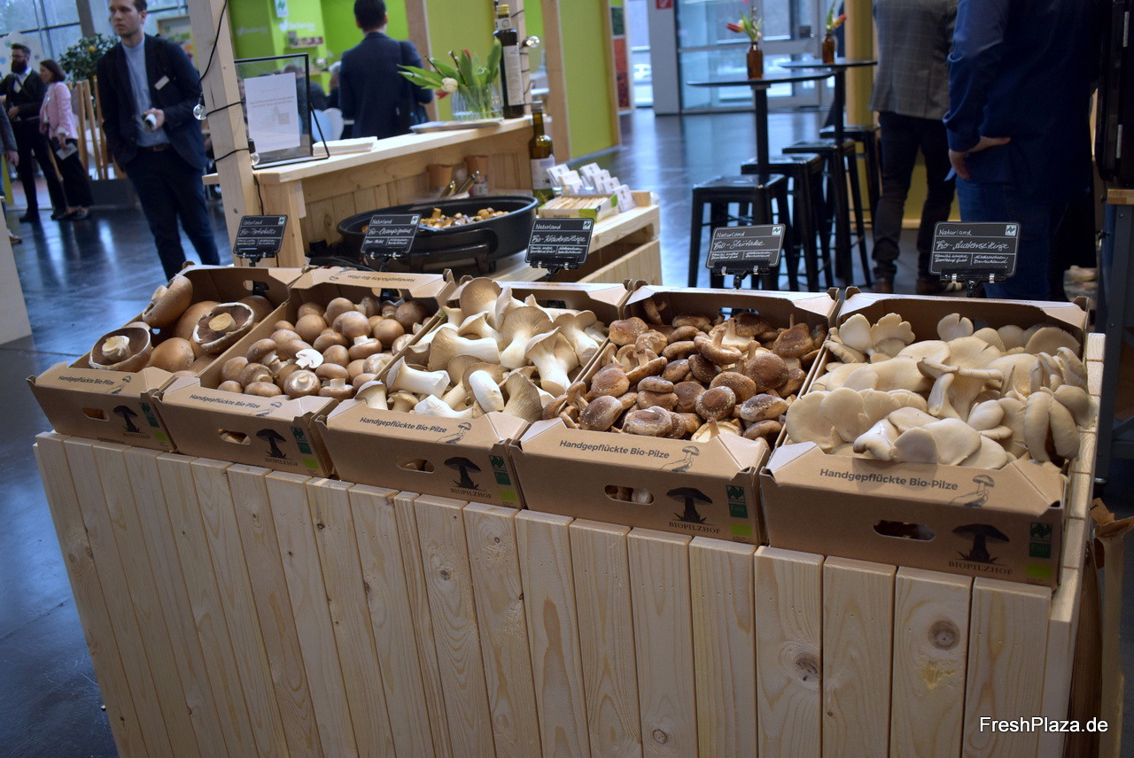 Am Stand der Biofrische GmbH mit Herrn Florian Pfahler (2. v.l.), dem Geschäftsführer des Berliner Handelsunternehmens. Auch in diesem Jahr stießen die schmackhaften Pilzprodukte vom Bio-Pilzhof Leipzigerland wieder auf große Begeisterung beim Messepublikum. Unter dem Namen Mushromeatz werden die Bio-Pilze aus regionalem Anbau bereits seit einigen Jahren als Fleischersatz angeboten.