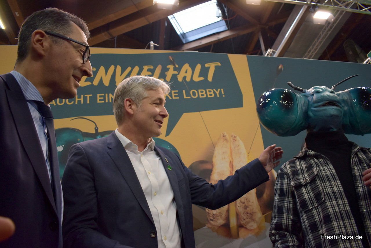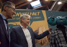 Bundesminister Cem Özdemir zusammen mit Jan Plagge, Präsident vom Bioland e.V. am Stand des Biounternehmens.