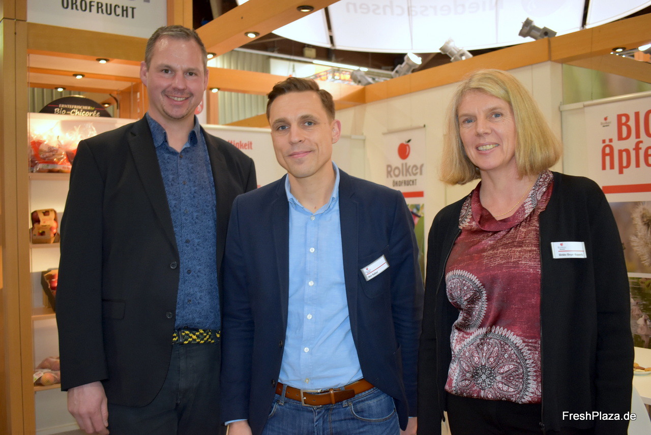 Birger Exner, Geschäftsführer Jörn Rolker und Wiebke Meyer-Huppertz von der Rölker Ökofrucht GmbH
