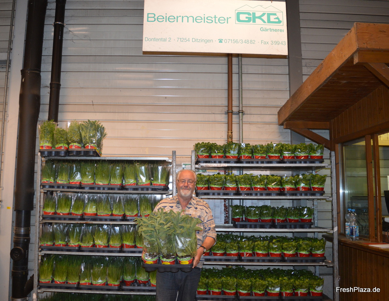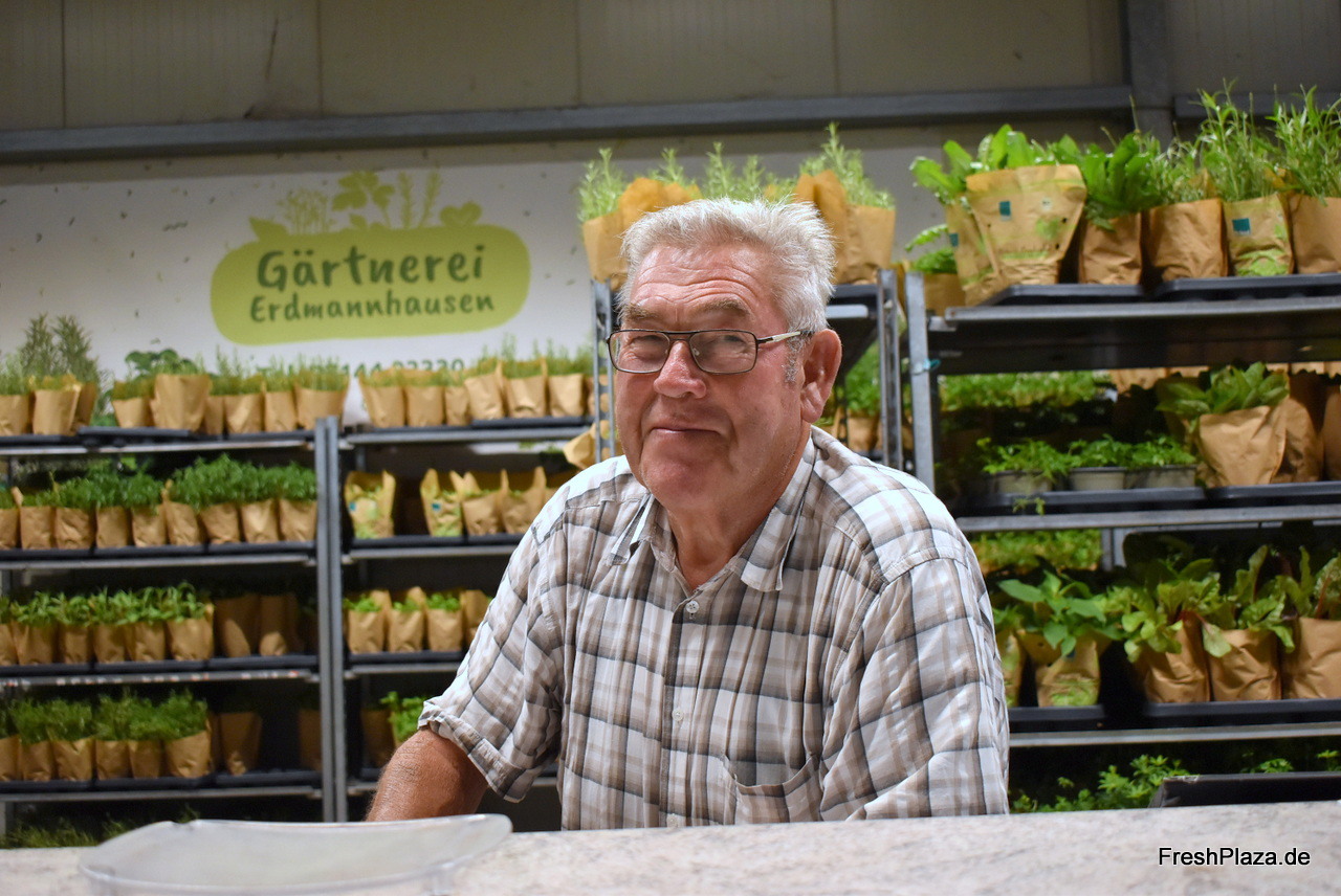Helmut Beiermeister ist Inhaber des gleichnamigen Gemüsebaubetriebes. Er vermarktet unter anderem Topfkräuter in der Erzeugerhalle.