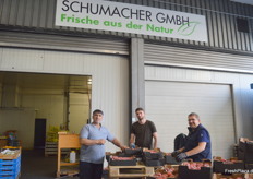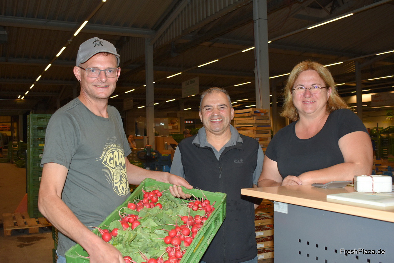 Inhaber Tobias Fleckhammer, ein Kunde und Alexandra Bader von der Fleckhammer Gemüse-Vertriebs-GmbH