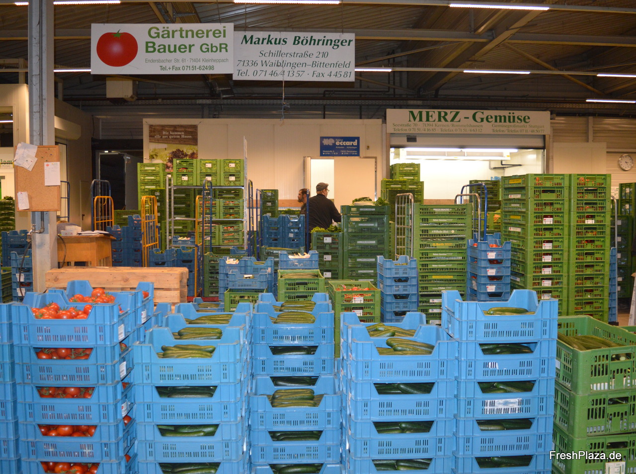 Während der deutschen Saison herrscht Hochbetrieb in der Stuttgarter Erzeugerhalle.