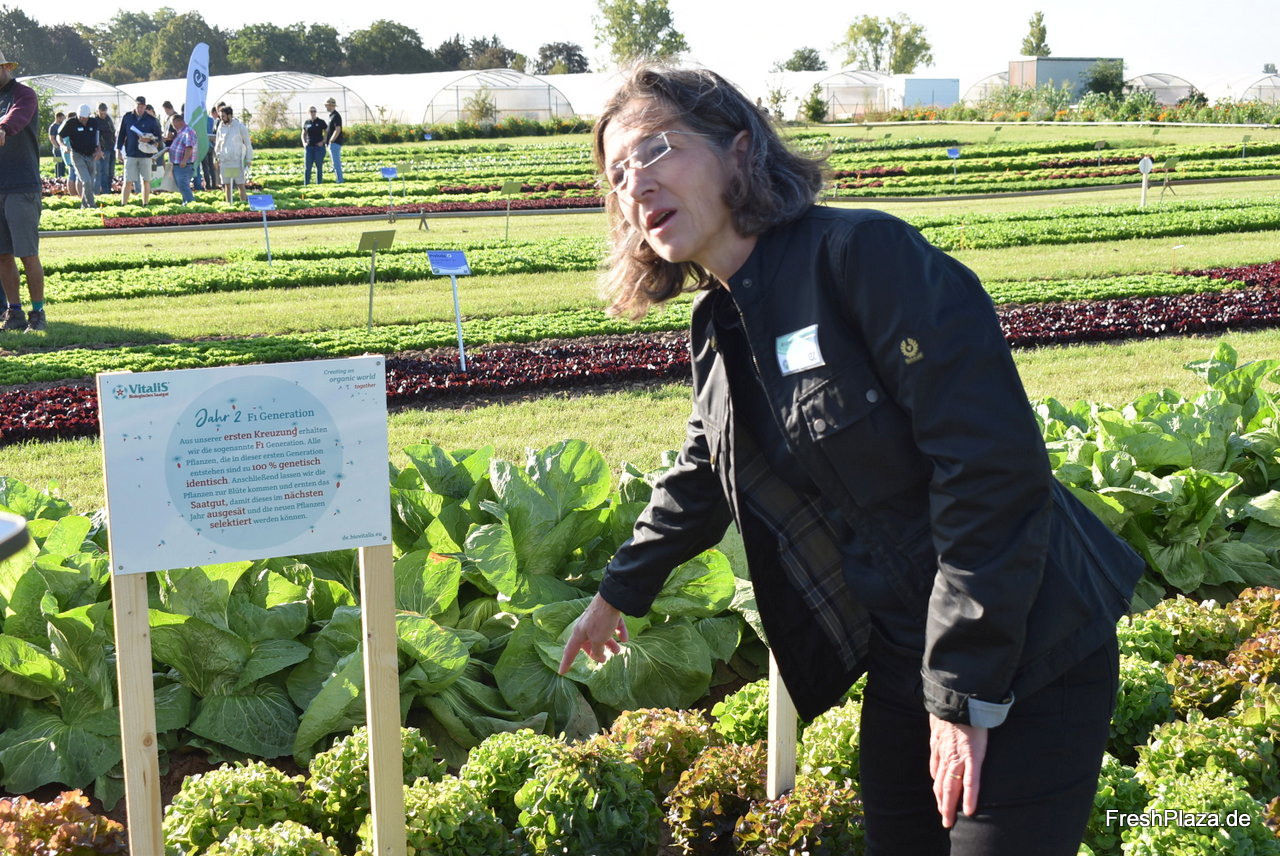Senior Breeder Dr. Andrea Schieder präsentierte langjährige Züchtungsverfahren, beispielsweise von Bremia-resistenten Salatsorten bei Enza Zaden und Vitalis.