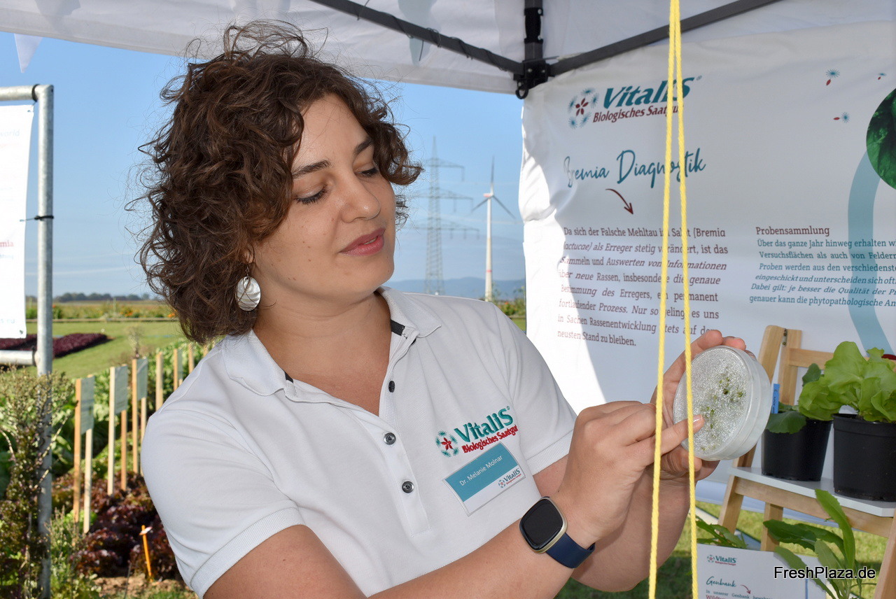 Product Manager Organic Dr. Melanie Molnar zeigt Verfahren, die bei der Bremia-Diagnostik im Bio-Bereich eingesetzt werden.