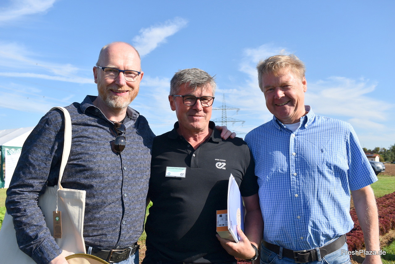 (v.l.n.r.:) Verkaufsberater Andreas Gemmar führte mit Subisidiary Sales Manager Matthias Bauer und Marketingleiterin Ruth Heiter durch den Tag. In diesem Jahr folgte auch das Rebranding von Enza Zaden mit einem neuen Logo.