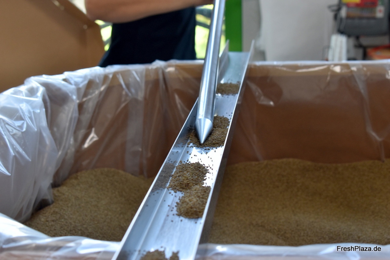 Proben aus mehreren Ecken der Saatgutpartie werden entnommen...