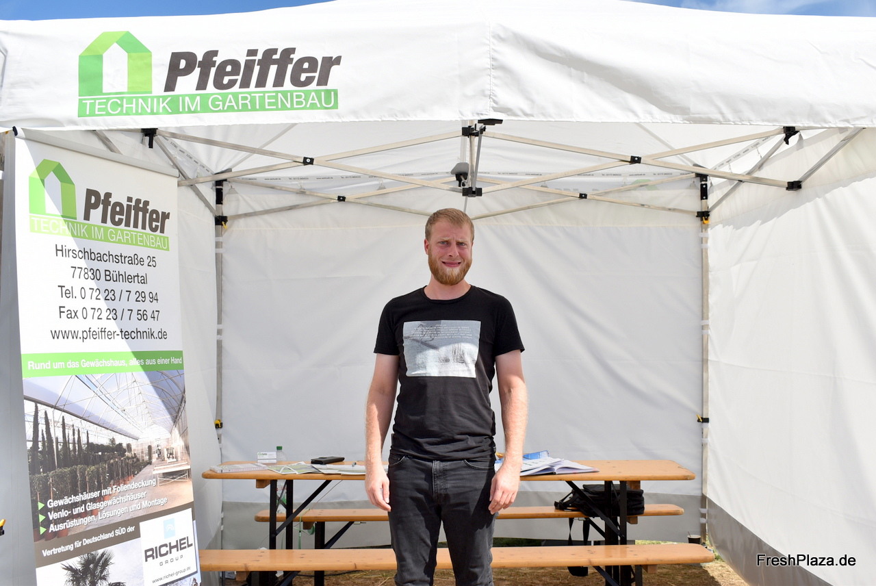 Technischer Leiter Robin Walter vom Unternehmen Pfeiffer - Technik im Gartenbau, das unter anderem Foliengewächshäuser anbietet.