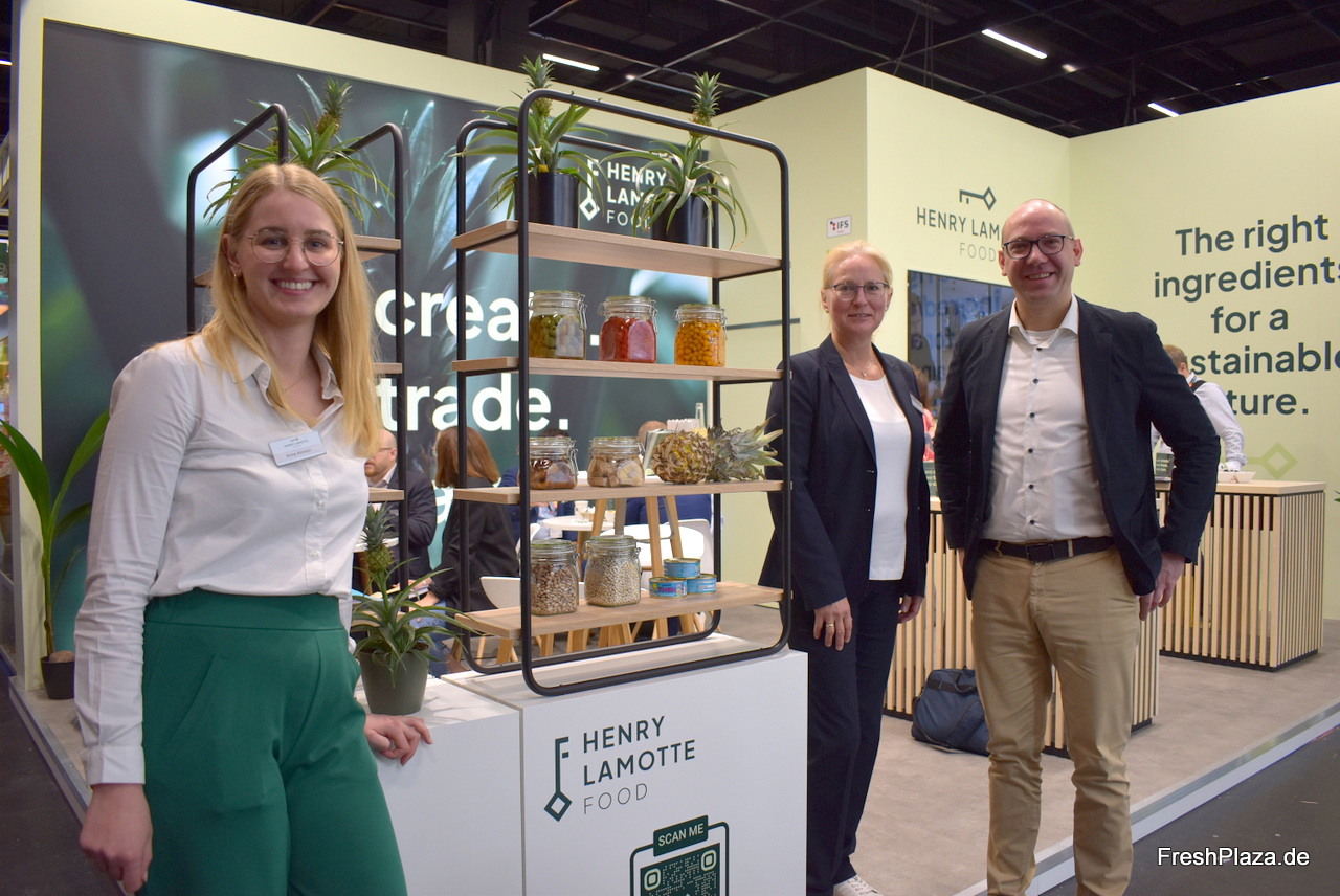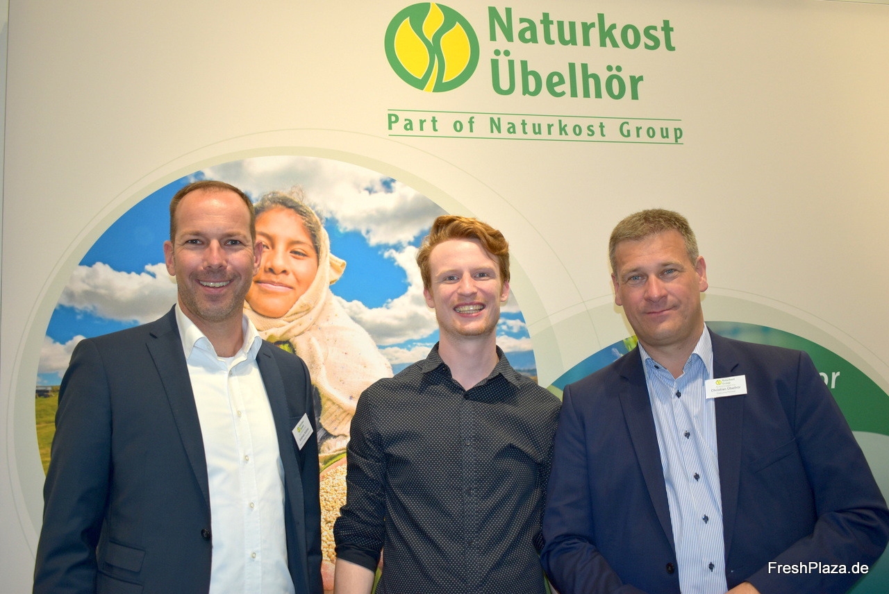 Prokurist Andreas Kellner, Category Manager Henrik Breher und geschäftsführender Gesellschafter Christian Übelhör von der Naturkost Übelhör GmbH & Co. KG. Das Unternehmen ist in den Bereichen Import, Export und Großhandel von Rohstoffen und Halbfertigprodukten tätig.